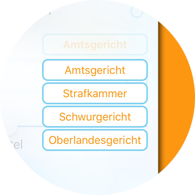 Wählen Sie den Auswahl-Button, um die unterschiedlichen Gebührensätze des jeweiligen Gerichtes zu aktivieren.